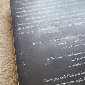 Percy Jackson and the Olympians, Book Five: The Last Olympian by Rick Riordan. This used book is in a decent condition with some wear to the pages, binding, and possible minor marks within.