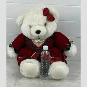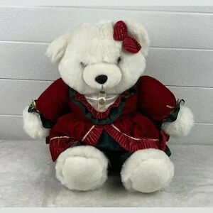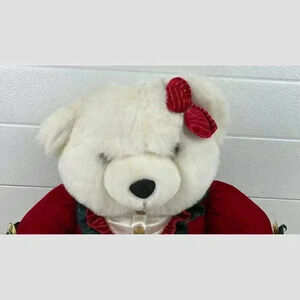 🎁4/$25 ~ Vintage Plush White Bear With Red/green Satin Dress