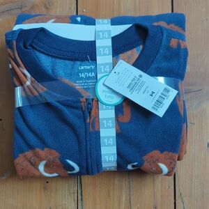 42-Carter's Blue and Brown Mammoth Print Footie