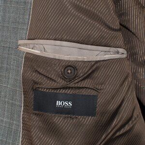 Hugo Boss Men's Sport Coat 42R Gray Brown Geometric Pattern Wool/Silk fabric by Reda