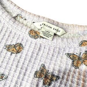 🌼4/$30 AE Purple Butterfly Waffle Knit Short Sleeve Ruffle Tee Large