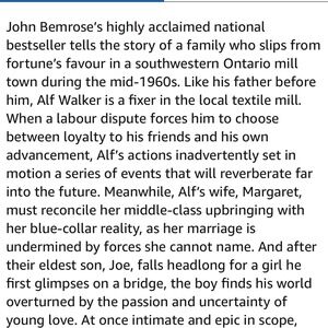 Longlisted for the Man Booker Prize A Finalist for the 2003 Giller Prize Across a bend of Ontario's Attawan River lies the Island, where, for generations, the Walkers have lived among other mill workers. But in the summer of 1965, with the threat of mill closures looming, the Walkers grapple with their personal crises, just as the rest of the town fights to protect its way of life.