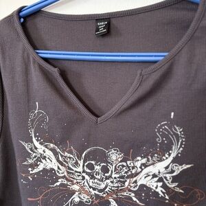 š4/30$š Gray Long Sleeve Top with Skull DesignāØš©¶