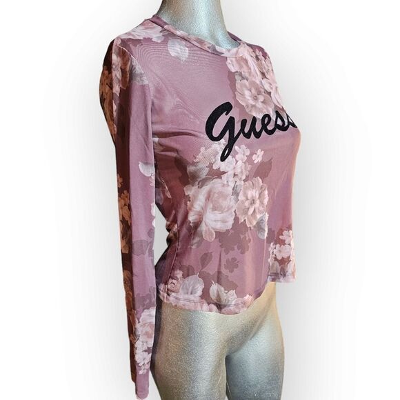 🌼4/$30 Guess Mesh Mauve Long Sleeve Sheer Top Small