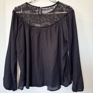 🎉4/30$🎉 Guilty NWT Black Long Sleeve Chiffon Lace Blouse - Size L (NWT)