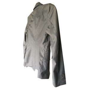 New with tags versatile structured light gray single breasted blazer with lapel collar, long sleeves and pronounced shoulders with two front welt pockets with flaps. Blazer is lined with silver satin. This classic styled blazer and can be dressed up or down depending on what you choose to wear it with. Garment appears to have been mislabeled. Size tag indicates small but it is in fact extra small size.