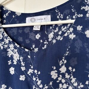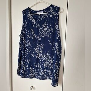 🎉4/30$🎉 Navy Floral Sleeveless Blouse – Size XL ✨