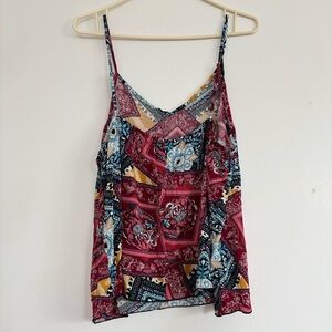 Bright bohemian multicolor cami with handkerchief hem. Lightweight and flowy. Size 2XL. Condition: 9/10.