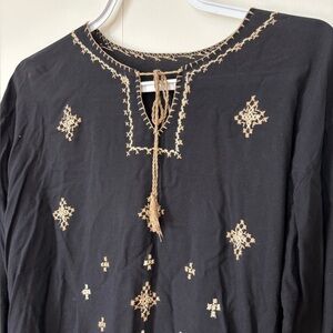 🎉4/30$🎉 Vintage Black Embroidered Boho Blouse✨ Size XL (ptp 22) — 8/10