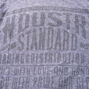 navy blueish/indigo, size medium," industry standard trading & distribution co" "built with love and honour worn with pride and glory"