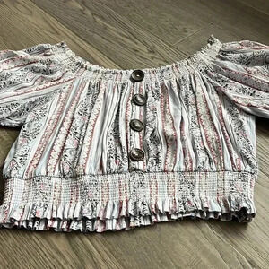 🌸4/$30🌸rebellion Again | Boho Off The Shoulder Paisley And Floral Crop Top