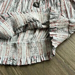 This top is just perfect for summer. Is nice and flowy and has an elastic at the bottom perfect to wear with anything. It’s in excellent condition and ready to wear.