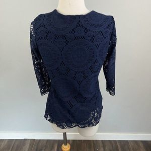 🌿4/$35🌿 BROCHURE Navy Blue Scoop Neck Lace 3/4 Sleeve Blouse *No Size Tag but Fits Like A Medium*