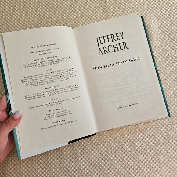 4/$40 Jeffrey Archer - Hidden in Plain Sight - Hardcover Book