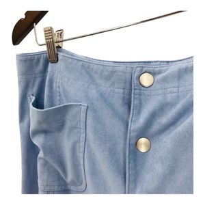 Sky baby blue , full button front , vintage , velour/Sueded like material, mini length skirt by Belle Sky