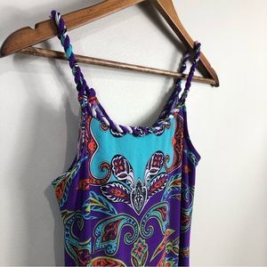 Purple, blue , red paisley, floral print , sleeveless with corded straps summer vacation dress by MSK
