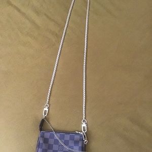 This is a stunning braided chain with clasps that easily hook onto many bags/purses.