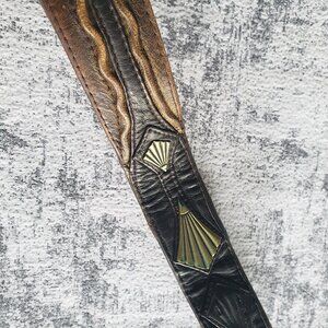 45" Custom Made Hand Crafted Brown & Tan Leather Tooled Belt