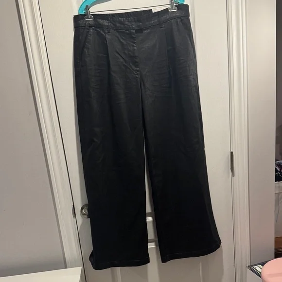 450 -American Eagle high rise ultra wide leg trouser - shiny black