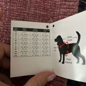 Body 19 to 21 inches chest 27 to 29 inches neck 18 to 20 inches