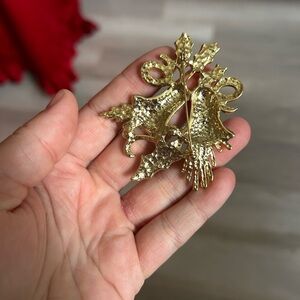 4/$50 Christmas Festive Red and Gold Bell Brooch 🎄