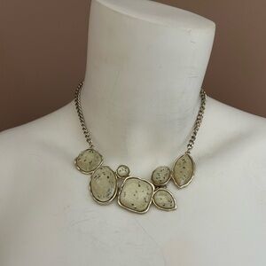 This elegant necklace features a stunning combination of gold and cream stones, perfect for adding a touch of sophistication to any outfit.
