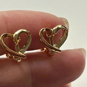 Minimalist gold heart earrings Leverbacks Measures 12 mm No stamp, no tarnish Inventory A