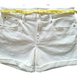 New without tags Gap white denim wash 5" mid-rise shorts with Washwell, button closure, zipper fly and classic 5-pocket styling. The shorts hit at mid-thigh.