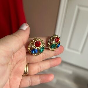 4/$50 Vintage Gold-Tone Clip-On Earrings with Red, Blue, and Green Gems ❤️