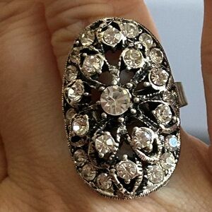 4/$50 cluster Elegant Silver Crystal Ring 7 1/2 🥳