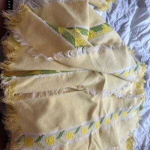 4/$50 dinning ware Yellow napkins and Green Fringed set of SIX 1950 💛