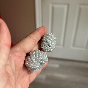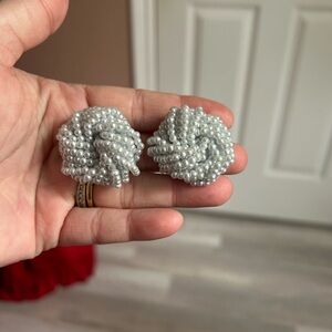 4/$50 pearl 1960 vintage Elegant Silver Beaded clip on Earrings 💙