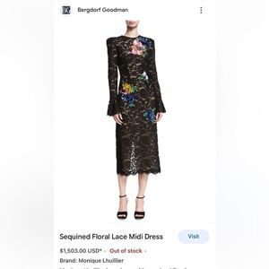 $4,500 Monique Lhuillier Sequin Floral Black Lace Dress