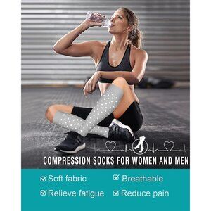 ✔️BETTER FITTING --The material of our compression socks is upgraded with nylon percentage from 40% to 85%. Delivers 360-degree stretch for greater flexibility and durability. We carefully designed and manufactured our compression socks to provide premium support, comfort, and relief without compromising your mobility. Form-fitting, lightweight, and breathable fabric features maintain joint stability regardless of activity.