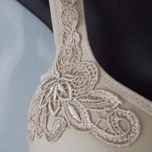 The lightly padded straps feature floral embroidery that runs down to each corner of the top of the cups.
