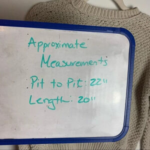 In gently used preowned condition. Light wash wear and care and fabric tag removed. Feels like a chunky cotton knit in my opinion. Please see pictures for approximate measurements, care and fabric details and examples of condition. Please reach out if you have any questions.