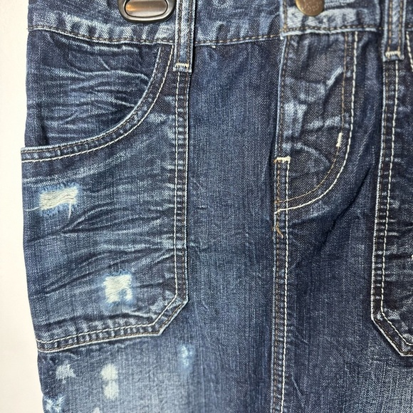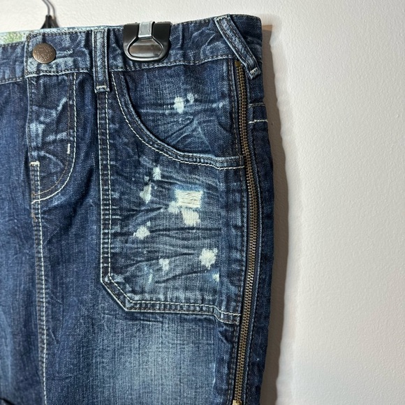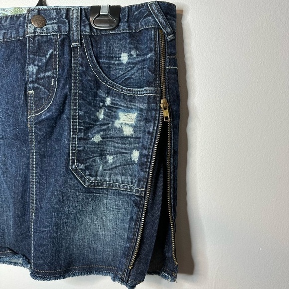 GUESS DESTROYED DENIM ZIP/SLIP MINI SKIRT IN SIZE 26