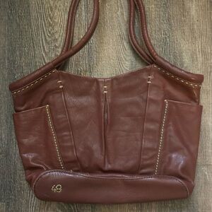 “49 Square Miles” leather large bag- check out their website, based out of San Fran and make exceptionally high quality leather goods. Luxury. This is a very chic bohemian bag beautifully stitched and very unique. Chocolate/conventional brown colour