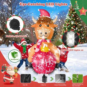 4FT Christmas Inflatable Cow with LED Lights Blow Up Yard Garden Holiday Decor