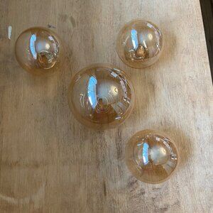 It includes 4 high-quality LED bulbs with glass globe lampshades (with an amber hue).