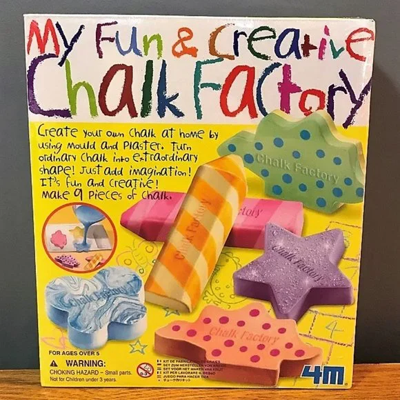 Create your own chalk at home by using mold and plaster. Turn ordinary chalk into extraordinary shape. Just add imagination. It's fun and creative. Makes nine pieces of unique chalk. Kit includes, 3 bags of plaster, chalk mold, paint, glitter, brush, stirrer, 2 ready-made chalk for making mystic colored chalk and detailed instructions.