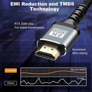 [HDMI 2.1 Cable 】SNESH Real 8K HDMI Cable meets the standard HDMI 2.1 Version and is also backward compatible with HDMI 1.2/1.3/1.42.0/2.0/2.1 versions. 8K transmission speed is way higher than 4K,