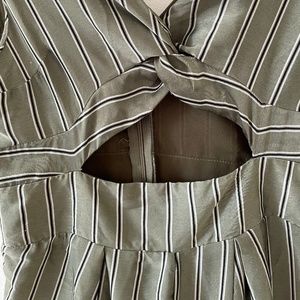 Jump into wedding season with this 4SI3NNA Striped Green Jumpsuit with a Center Cutout! Heads up: ✨ Selling as I don't reach for this jumpsuit anymore ✨ Pre-loved in Excellent Used Condition (ECU)! ✨ Note photos #12-14 show some poofs from the wear over time. These can be easily removed with a fabric defuzzer. ✨ Bundle with another item for 20% off! Let me know if y'all have any questions! 🙋‍♀️ Open to reasonable offers 🚭 Smoke-free home 🐶🐱 Pet-free home