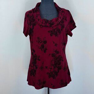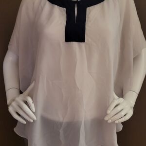 This stylish blouse from Ricki's features a beautiful blue hue with ruched detailing along the sides. The 3/4 sleeves and delicate lace material add a touch of elegance, while the scalloped edges provide a feminine finish.
