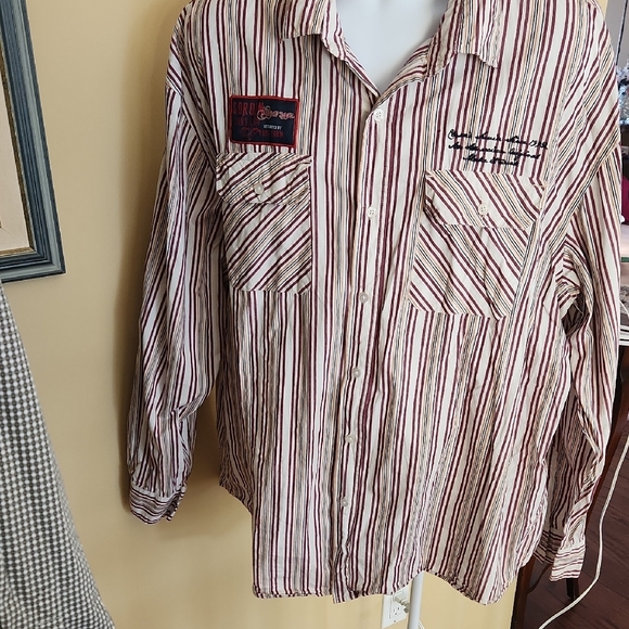 4XL Phat Farm Red and White Striped Button Down Shirt