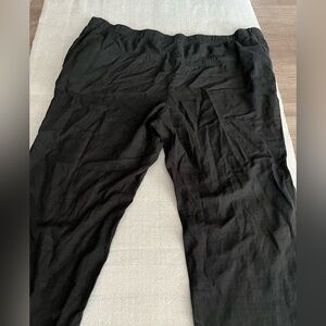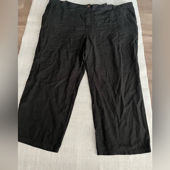 [4XL]H&M Women Black Linen Viscose Blend Zipper Button Front Closure Ankle Pants