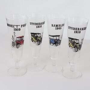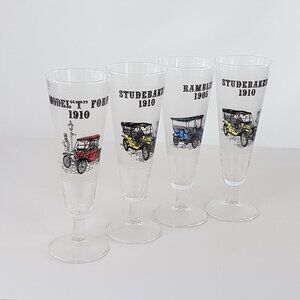 Vintage Libbey 8oz pilsner glasses with classic car designs.
