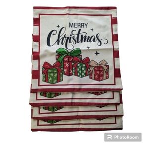 4pc set. Christmas Throw Pillow Covers. Christmas cushion covers with hidden zipper. Decorative throw covers for the couch, bed, sofa. Throw covers only, insert pillow not included. Christmas Throw Pillow Covers. 4pc set. Single side print. New without tags. Small manufacture stain flaw - see last picture. #ChristmasDecorations. #christmasthrowcovers. #pillowcovers.
