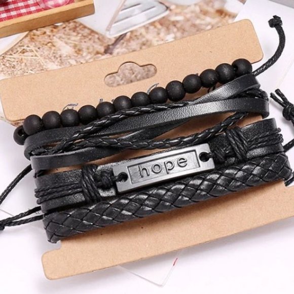4pcs Men's Multilayer Leather Bracelet Braided (Hope)- ADJUSTABLE SIZES