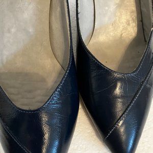 Francine blue leather 1" heel, very comfortable. From the 1980's but cleaned and oiled every year. size 5 1/2. one of the heels has a small nick but think the leather could be stretched back out and glued. Just to let u all know, i have no idea what i paid for my shoes i'm 60+